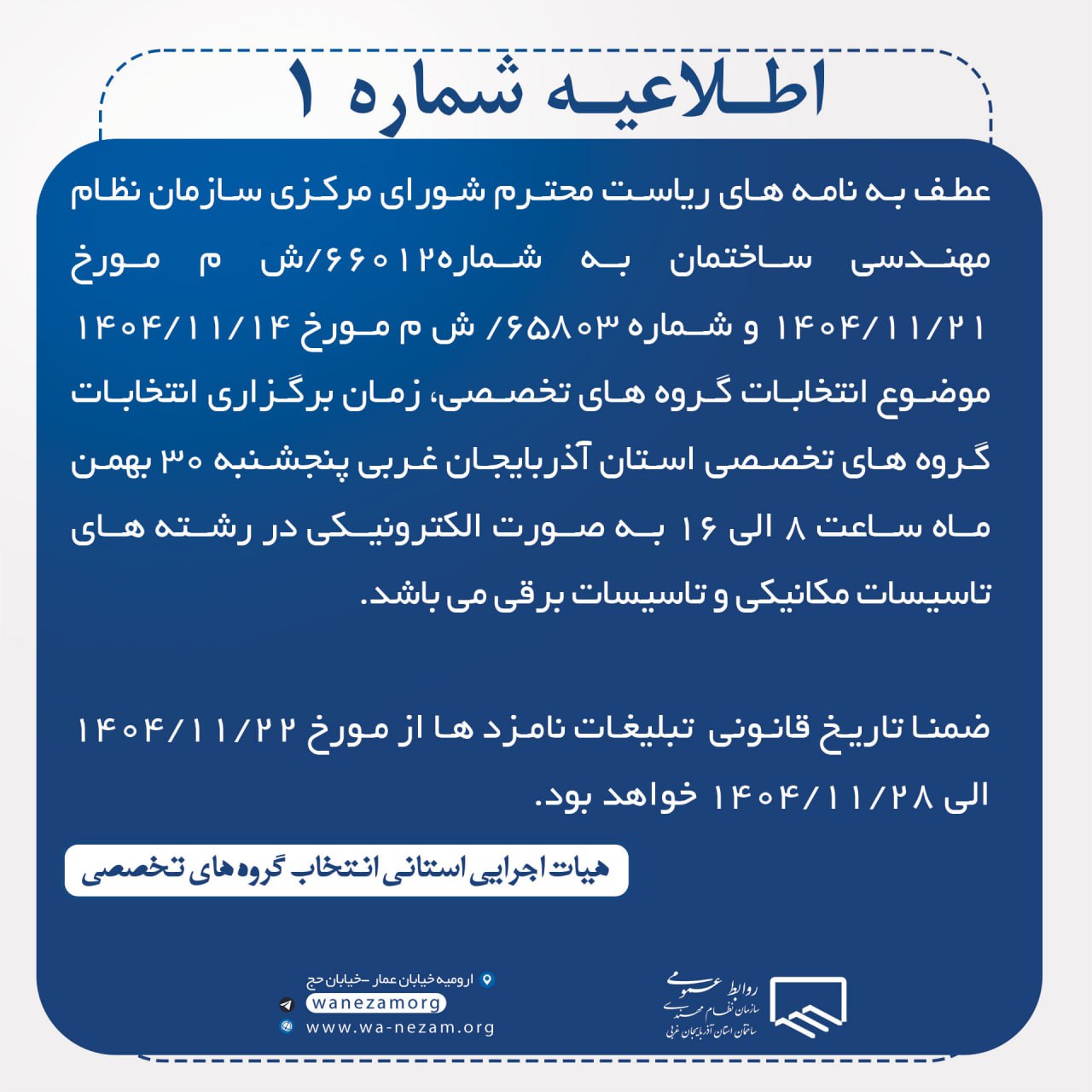 اسامی نامزد های انتخابات نهمین دوره هیات رئیسه گروه های تخصصی  سازمان نظام مهندسی ساختمان استان آذربایجان غربی