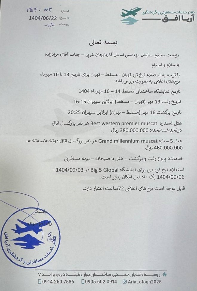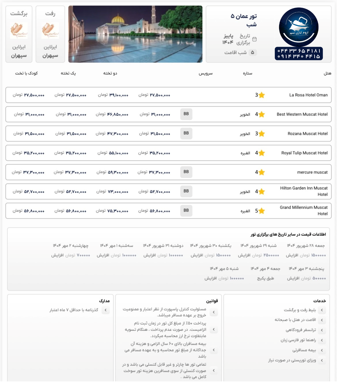 🔹مبلغ تور مذکور به انتخاب خود شخص و از طریق آژانس مربوطه می باشد.