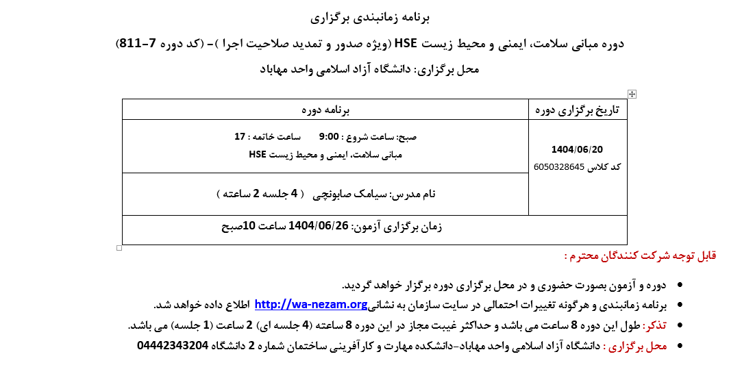 تغییر برنامه دورهHSEصدور و تمدید | مجری: دانشگاه آزاد اسلامی واحد مهاباد | دانلود |