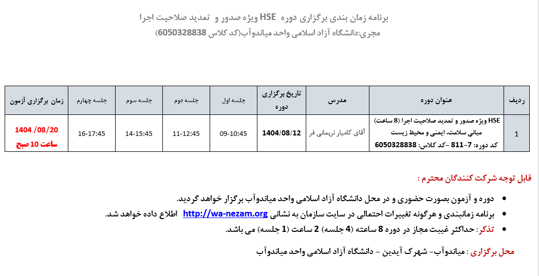 برنامه دورهHSEصدور و تمدید | مجری: دانشگاه آزاد اسلامی واحد میاندوآب | دانلود |