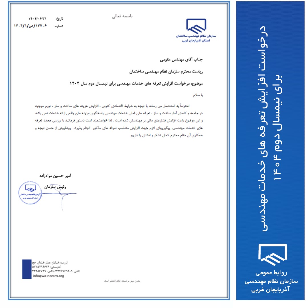 درخواست افزایش تعرفه های خدمات مهندسی برای نیمسال دوم 1404
