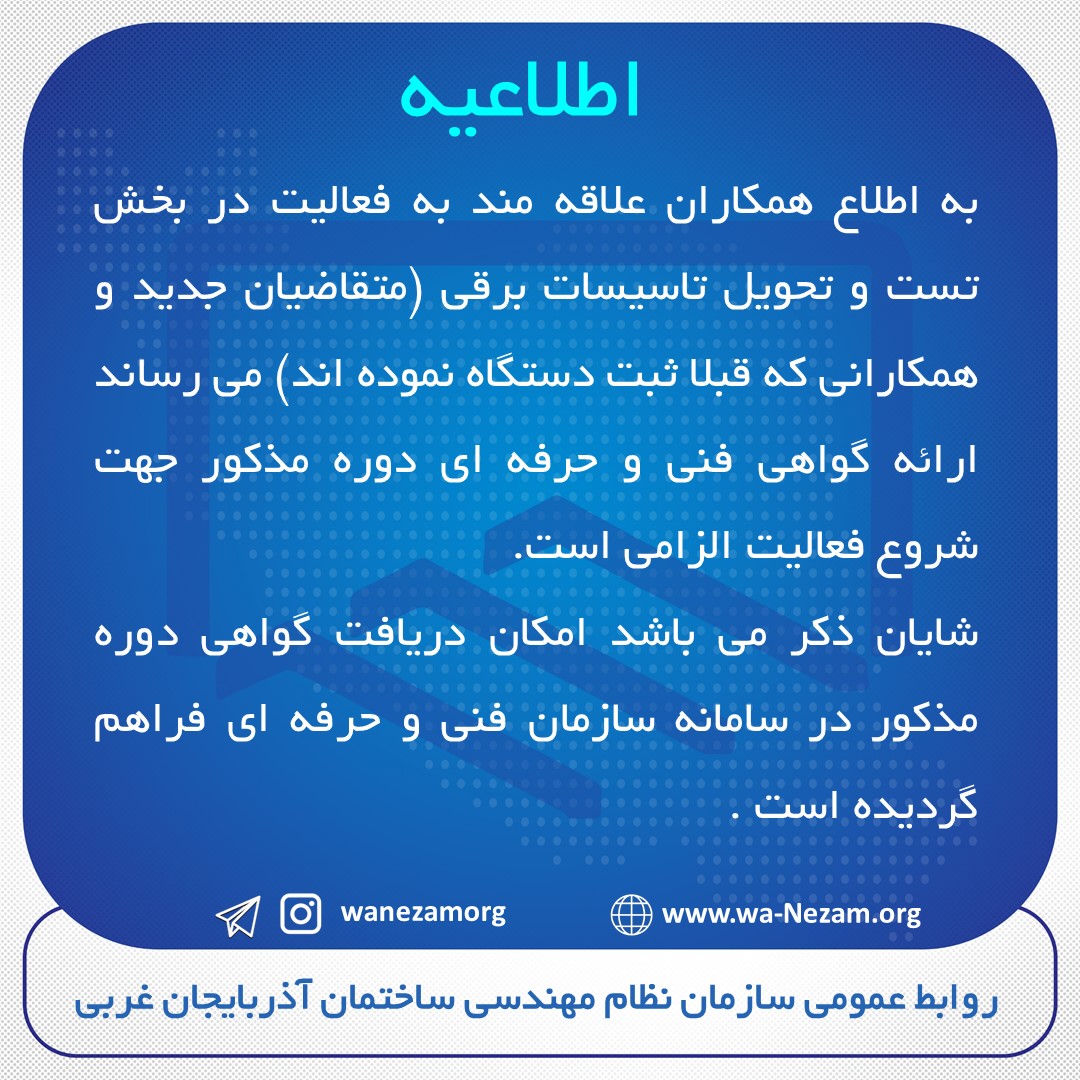 فعالیت در بخش تست و تحویل تاسیسات برقی#روابط_عمومي