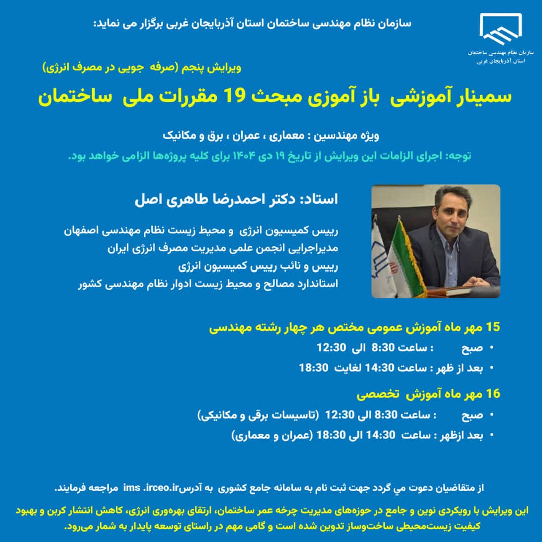 سمینار آموزشی بازآموزی مبخث 19 مقررات ملی ساختمان