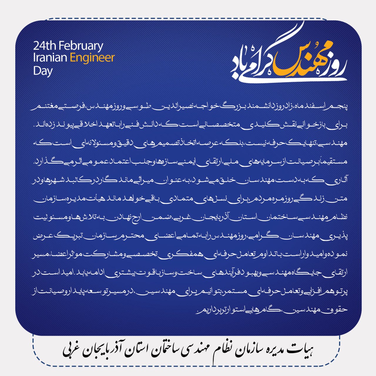 اخبار🔹️ضمن تبریک مجدد روز مهندس، به اطلاع اعضای محترم سازمان نظام مهندسی س ...