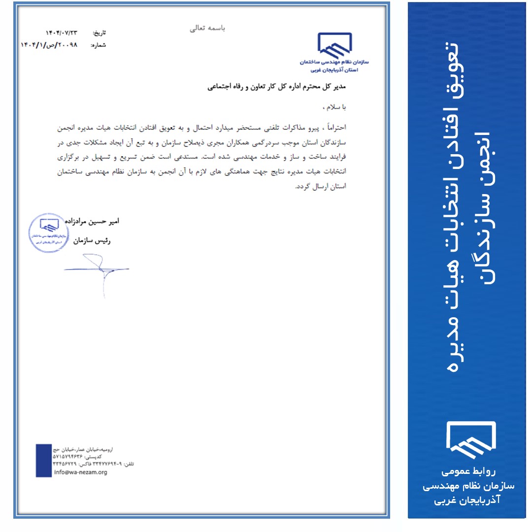 نامه مدیر کل محترم دفتر مقررات ملی و کنترل ساختمان در خصوص د...