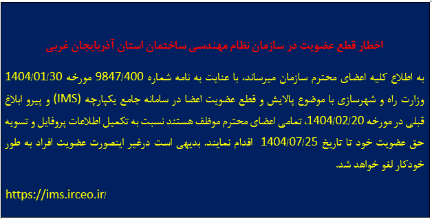 - دریافت کارت شناسایی سازمان و شماره عضویت نظام مهندسی